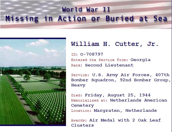 CUTTER WILLIAM H JR - Second Lieutenant from Bibbs County, Georgia...